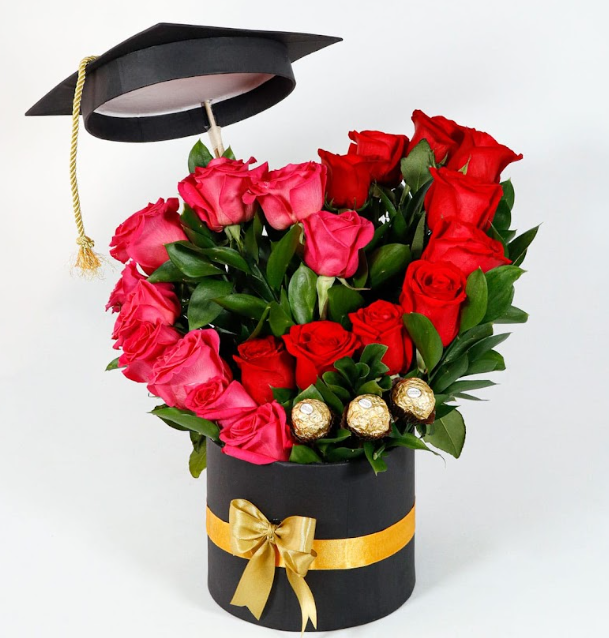 Un elegante bouquet de rosas, perfecto para celebrar el logro de un graduado. Este ramo simboliza el esfuerzo, la dedicación y el éxito alcanzado, acompañado de un toque de frescura y elegancia en cada pétalo.