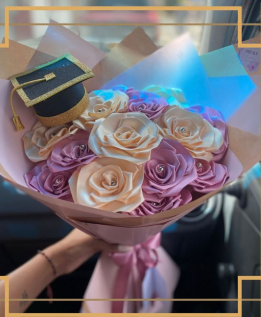 Un ramo que parece sacado de un cuento de hadas, lleno de flores de colores delicados y naturales que permanecen intactas con el paso del tiempo.